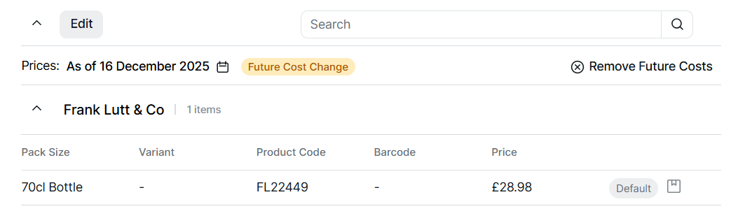 To prepare for price changes in advance future dated prices can be added to a purchase unit.