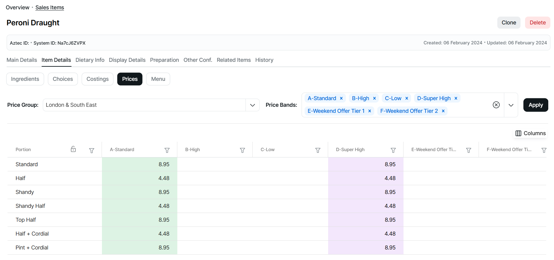 To enhance the efficiency and ease of setting up new sales items, we are excited to announce a significant update to the products app. This new feature allows for comprehensive pricing capabilities across all price groups and bands, ensuring a seamless experience allowing you to fully price all portions for an item without leaving products and navigating to pricing.